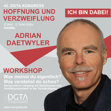 Den Workshop biete ich im Rahmen des 43. Kongresses der DGTA vom 31.5. bis 2.6.24 im Kongress Palais Kassel an. Neben meinem Workshop erwarten Euch zwei spannende Keynotes, ein interessantes Rahmenprogramm sowie weitere rund 90 Workshops und Vorträge rund um das Kongressthema „Hoffnung und Verzweiflung.“